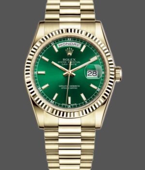 Rolex Day-Date 118238 Yellow Gold Fluted Bezel Green Dial 36mm Unisex Replica Watch
