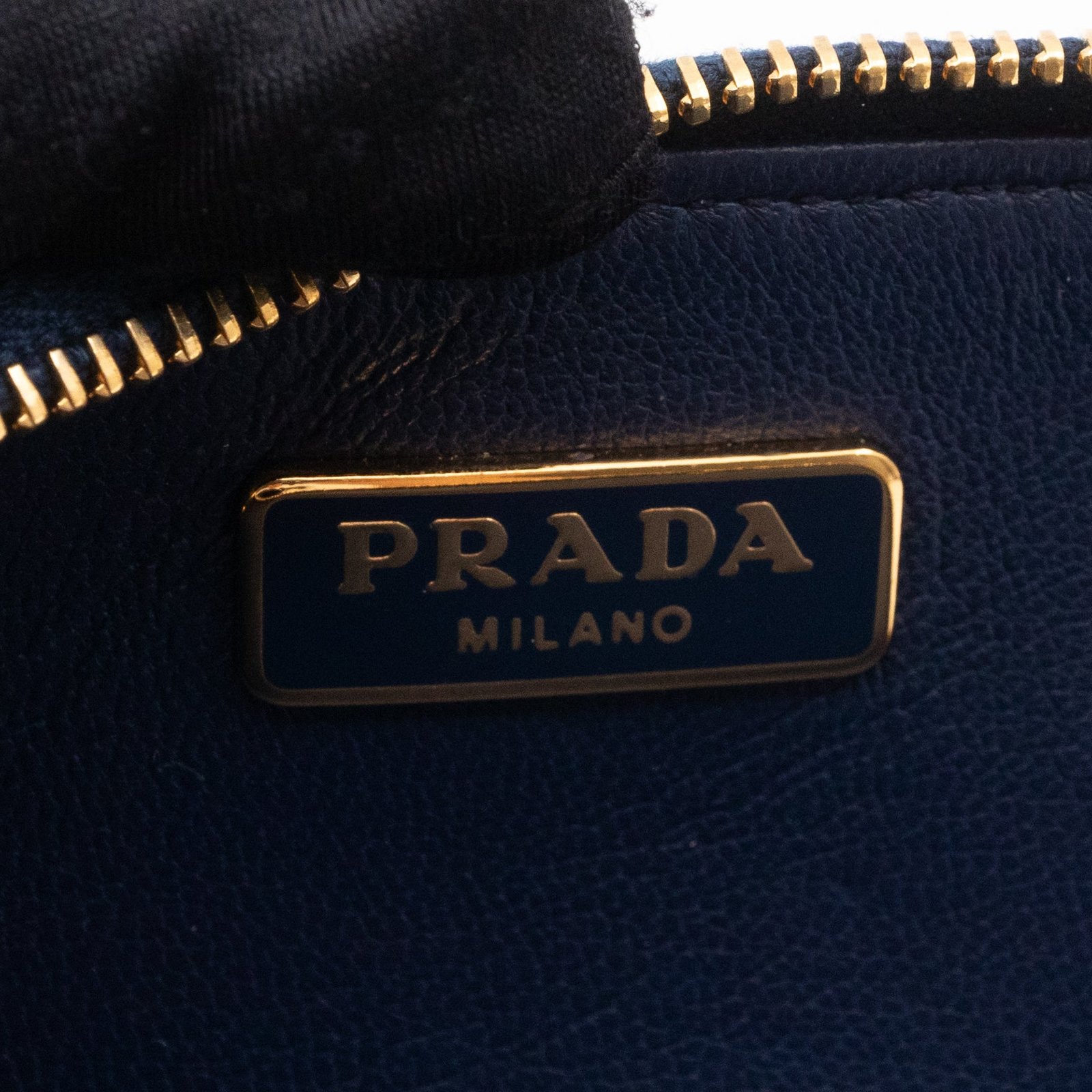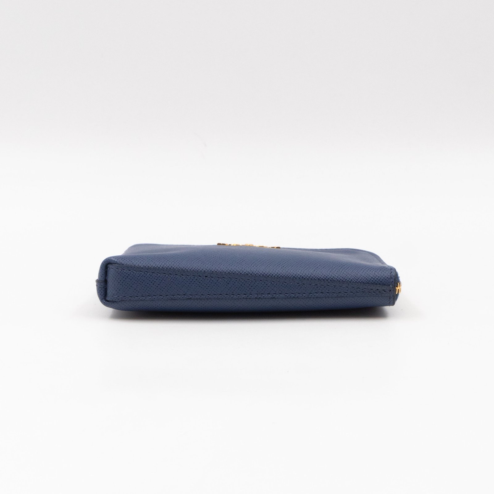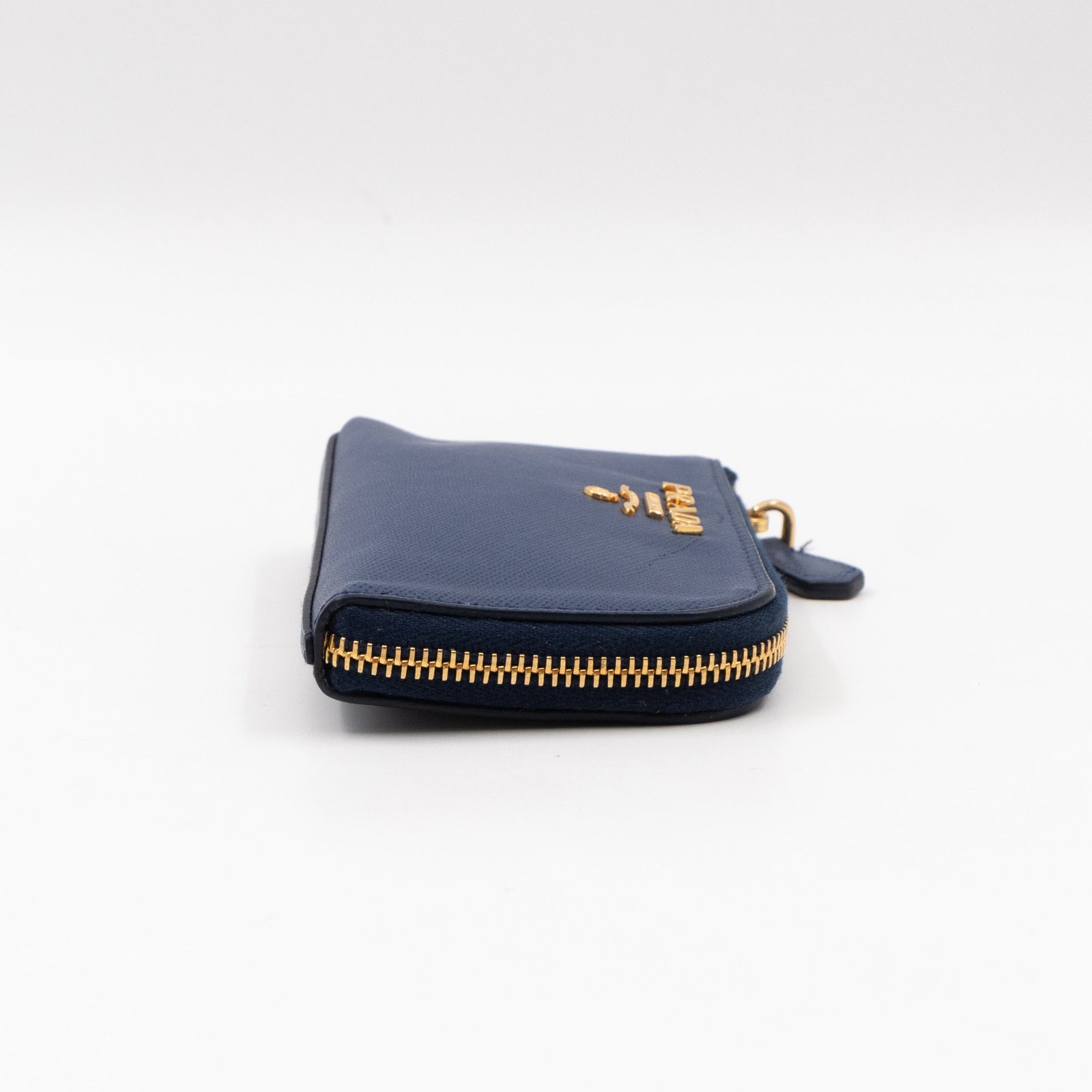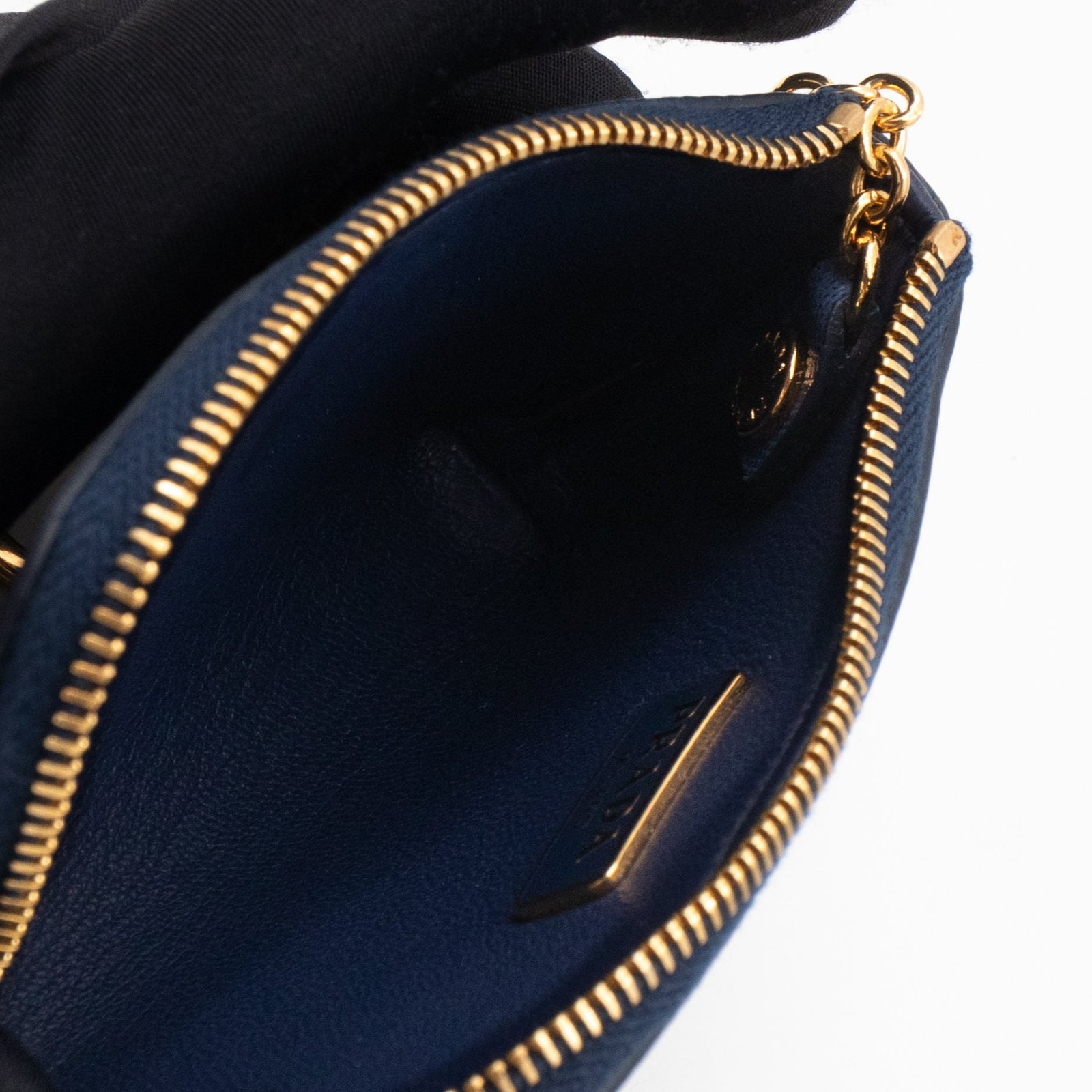 A practical mini Key Pouch from Prada. This everyday accessory is made with blue saffiano leather, it has zipper closure and a key ring on chain inside. Attach it your bag or keep it in your pocket. It fits keys, coins and even bank cards.