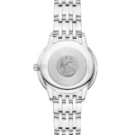 Reptesenting classical elegance, the Omega De Ville Prestige watch collection is home to a range of timepieces offered in various colours and styles. This lady’s model is powered by a quartz movement with an improved battery life and is crafted from stainless steel. The movement is concealed behind a closed caseback embossed with a God Chronos medallion. The design blends the traditional with the modern in this timeless design, perfect for all occasions. It measures a diameter of 30mm and is equipped with 30-meter water resistance. Rhodium-plated hands travel over a white mother of pearl dial. An hour track surrounding these hands is characterised by a mix of cabochons and traditional Roman numerals – also executed in the same rhodium plating. The Omega lettering and logo stand proud at 12 o’clock, protected underneath a piece of anti-reflective and scratch-resistant sapphire crystal glass. This lady’s Omega De Ville Prestige watch wraps effortlessly around the wrist with a stainless steel bracelet with a folding clasp that is engraved with the iconic brand logo.