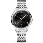 OMEGADe Ville Prestige 40mm Black/Rose Dial Men’s Automatic Bracelet Watch434.10.40.20.01.001. Stainless steel 40mm case and bezel all on a matching stainless steel bracelet. This men’s watch has a black dial with rose golden hands and hour markers, date display at the 6 o’clock position. Sapphire crystal glass and water resistant up to 30m. Power reserve up to 55 hours. OMEGA calibre 8800 automatic movement.