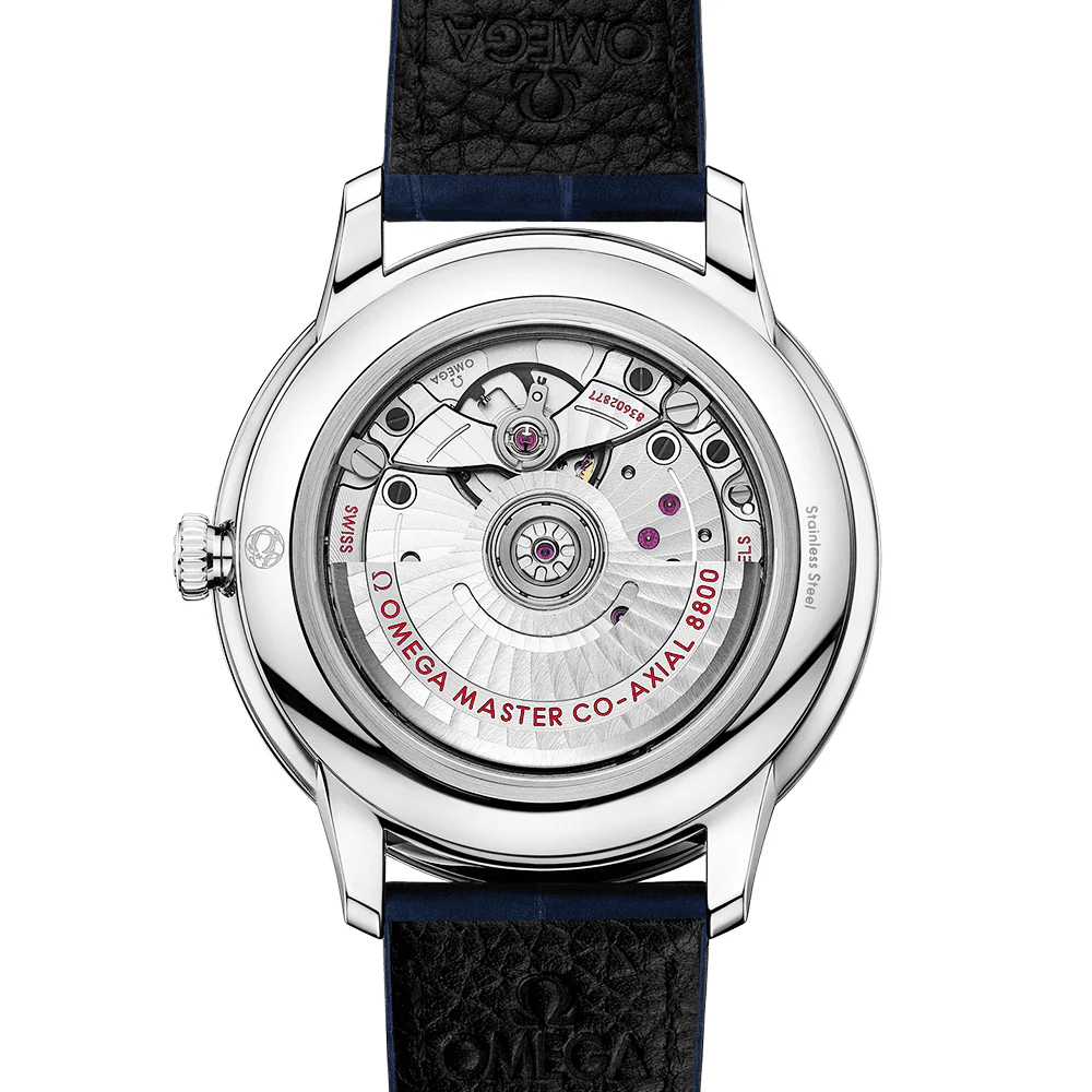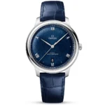 OMEGADe Ville Prestige 40mm Dark Blue Dial Men’s Automatic Strap Watch434.13.40.20.03.001. Stainless steel 40mm case and bezel all on a blue leather strap. This men’s watch has a dark blue domed dial with polished hands and hour markers, date display at the 6 o’clock position. Sapphire crystal glass and water resistant up to 30m. Power reserve up to 55 hours. OMEGA calibre 8800 automatic movement.