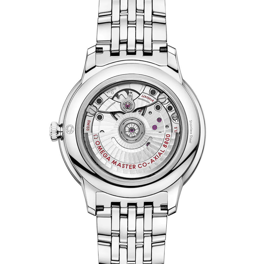 OMEGADe Ville Prestige 40mm Silver Dial Men’s Automatic Bracelet Watch434.10.40.20.02.001. Stainless steel 40mm case and bezel all on a stainless steel bracelet. This men’s watch has a silver domed dial with blackened hands and hour markers, date display at the 6 o’clock position. Sapphire crystal glass and water resistant up to 30m. Power reserve up to 55 hours. OMEGA calibre 8800 automatic movement.