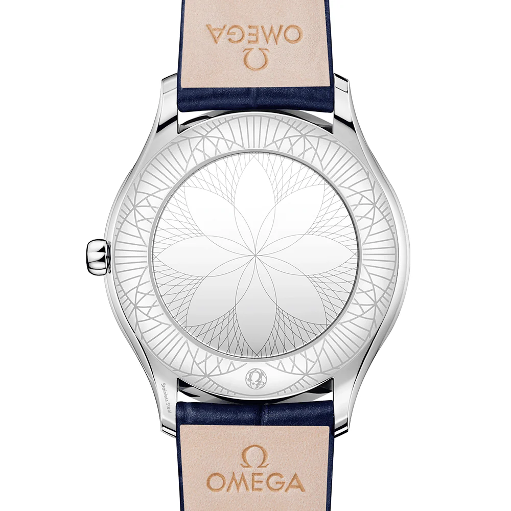 OMEGA De Ville Tresor 36mm Blue Dial Diamond Set Ladies Watch 428.18.36.60.03.001. Stainless steel 36mm case and diamond set bezel all on a blue leather strap. This ladies watch has a blue roman dial with polished hands and hour markers. Sapphire crystal glass and water resistant up to 30m. Quartz movement.