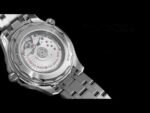 Dressed in sleek grey tones and a vivid deep blue ceramic bezel, this men’s dive watch from Omega is equipped with a state-of-the-art movement for peerless precision and has been forged from a blend of superior materials for optimum robustness. This men’s Omega Seamaster Diver 300M watch measures a 42mm diameter and has been crafted from stainless steel with 300-meter water resistance. Its domed sapphire crystal glass lens acts as a protective shield over the surface of the sun-brushed PVD chrome coloured ceramic dial with a polished and brushed laser-ablated wave-effect pattern. Blue trimmed central hour and minute hands have been treated with a layer of Super-LumiNova as have the hour indexes. A blue-coated lollipop second hand glides over a date aperture at 6 o’clock, framed by a unidirectional rotating bezel for measuring elapsed time underwater. The men’s 42mm Seamaster Diver 300M watch is powered by the Master Chronometer Calibre 8800, which provides a 55-hour power reserve and performs behind a transparent sapphire caseback. In addition to a helium escape valve and a screw-down crown, the watch also Features a supple and sporty blue structured rubber strap, enclosing the wrist with a steel folding clasp.