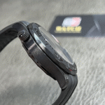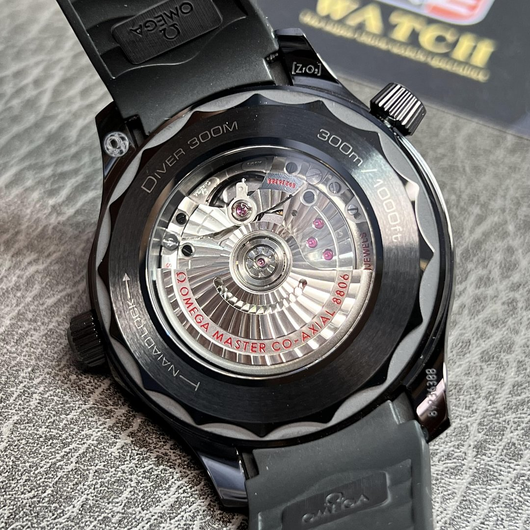 An integrated black rubber strap with a black ceramic buckle completes the watch’s bold appearance. A transparent sapphire crystal on the wave-edged case back offers a clear view of OMEGA’s Co-Axial Master Chronometer Calibre 8806 movement. This watch is designed to withstand strong magnetic fields, even those greater than 1.5 tesla (15,000 gauss), ensuring outstanding precision and performance.