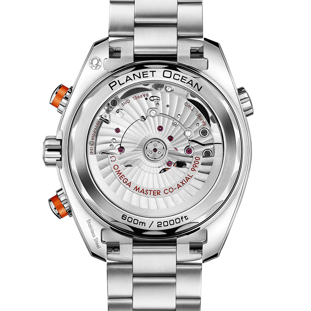 The Omega Seamaster Planet Ocean watch collection was launched in 2005 and since then has been appealing to the masses with its feature-packed spec using high-end materials for deep-sea exploration. Equipped with a helium escape valve, a screwed caseback and a screw-in crown – this 45.5mm Omega Seamaster watch can promise a 600-meter water resistance. Its solidly built stainless steel case Features a domed scratch resistant sapphire crystal glass on the front side and a transparent exhibition caseback feature to admire the performance of an in-house calibre on the reverse. The Omega Master Chronometer calibre 9900 has passed the 8 rigorous tests set by METAS (The Swiss Federal Institute of Metrology) and offers a useful 60-hour power reserve. Surrounding a ceramised titanium dial with a small seconds counter and a date window is a vibrant orange ceramic unidirectional bezel ring with its diving scale filled with liquid ceramic and Super-LumiNova. The hands on the dial are also lume-filled and combine with two sub-counters at 3 and 9 o’clock to create a technical-looking dial. These sub-counters offer a 12-hour totaliser and small seconds function. The Omega Seamaster Planet Ocean 600M watch is completed on a stainless steel bracelet with a patented extendable fold-over clasp and diver extension.