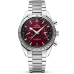 Measuring a 40.5mm diameter, the Omega Speedmaster watch with a burgundy dial is inspired by the legendary 1957 model. Its stainless steel case, integrated with 50-meter water resistance, is topped with a brushed bezel equipped with a tachymetric scale for measuring speed based on distance. The rhodium-plated hour markers and “Broad Arrow” hands have been treated with Super-LumiNova material for assisted timekeeping in the dark and add contrast to the dial in the daytime. These Features, along with a 12-hour totaliser at 3 o’clock and 60-minute sub-dial at 9 o’clock, are all protected underneath a pane of anti-reflective sapphire crystal glass front. This men’s Omega Speedmaster ’57 watch Features a date window in black at 6 o’clock and is powered by the brand’s Co-Axial Master Chronometer Calibre 9906, which provides a 60-hour power reserve. The manual-winding movement also Features rhodium-plated finishes with Geneva waves in arabesque that are put on show through a sapphire-backed case. This Omega Speedmaster ‘57 Burgundy watch is fitted on a stainless steel bracelet with an Omega-engraved logo and the brand’s patented comfort release adjustment system