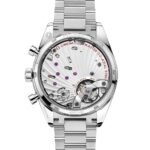 Inspired by the 1957 Speedmaster watch, this stylish Omega Speedmaster ’57 Chronograph watch combines an entrancing deep green dial with a stainless steel bracelet and a matching brushed stainless steel bezel with a tachymeter scale for measuring speed based on distance. The 40.5mm model is crafted from stainless steel and offers a water resistance of 50 meters. Its green dial offers a sub-counter at 3 o’clock for the 12-hour function and a 60-minute counter at 9 o’clock. These sub dials are balanced by a date window in black at 6 o’clock, protected underneath a sapphire crystal glass front with anti-reflective and scratch resistant properties. This men’s Omega Speedmaster ’57 watch is powered by the manual-winding Omega Co-Axial Chronometer Calibre 9906, which provides a 60-hour power reserve. It sits behind a sapphire crystal glass exhibition caseback, putting on show its rhodium-plated finishes with Geneva waves in arabesque. To complete its iconic look, the green Omega Speedmaster ’57 watch is fitted on a comfortable stainless steel bracelet with a folding clasp and patented comfort release adjustment system.