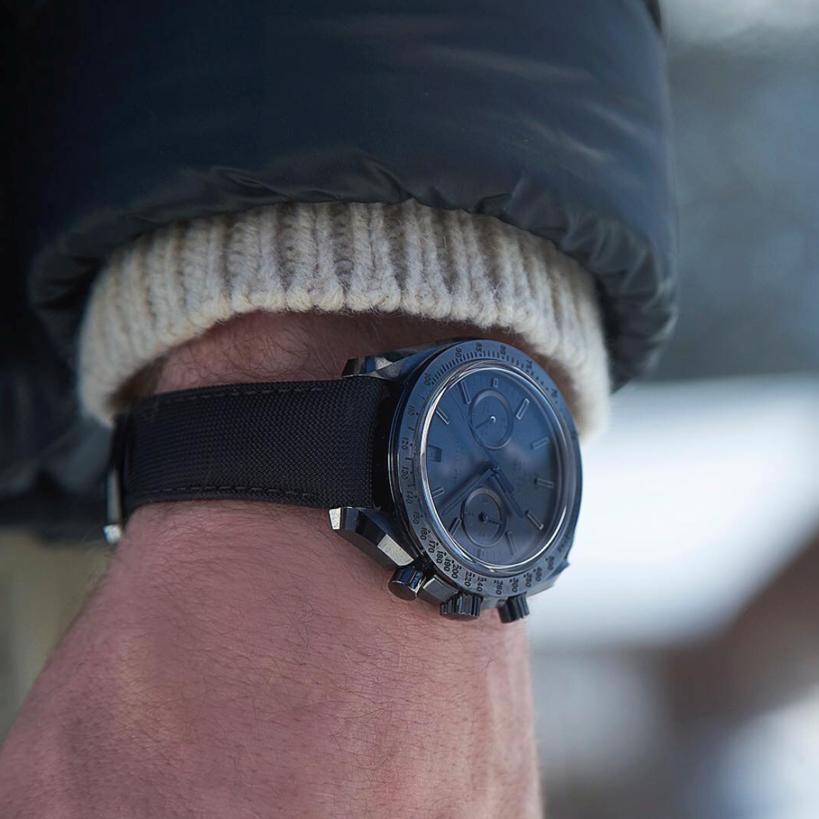 It was the adventures and the accomplishments of the Apollo 8 astronauts that inspired the all-black, ceramic OMEGA Speedmaster Dark Side of the Moon, but it is the mystique of the Earth’s nightlight and its ever-changing yet constant presence that has spurred the creation of the Speedmaster Dark Side of the Moon “Black Black”. This 44.25 mm model has a polished and brushed black ceramic case body, a matt black ceramic dial and a black ceramic clasp on a black coated nylon fabric strap. Giving this model its nickname are its brushed blackened Moonwatch-style hands and blackened applied indexes – all of which are coated with black Super-LumiNova. The familiar sub-dials at 3 and 9 o’clock are also matt black and the black ceramic bezel has a black lacquered tachymeter scale. At its heart is the OMEGA Co-Axial calibre 9300.