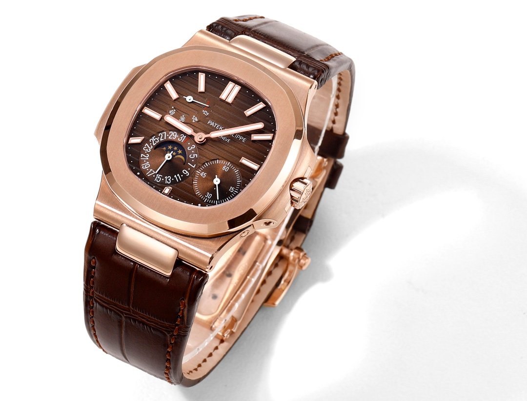 Patek Philippe Nautilus Moon Phases Rose & White Gold Slate Brown Dial 5712GR 001