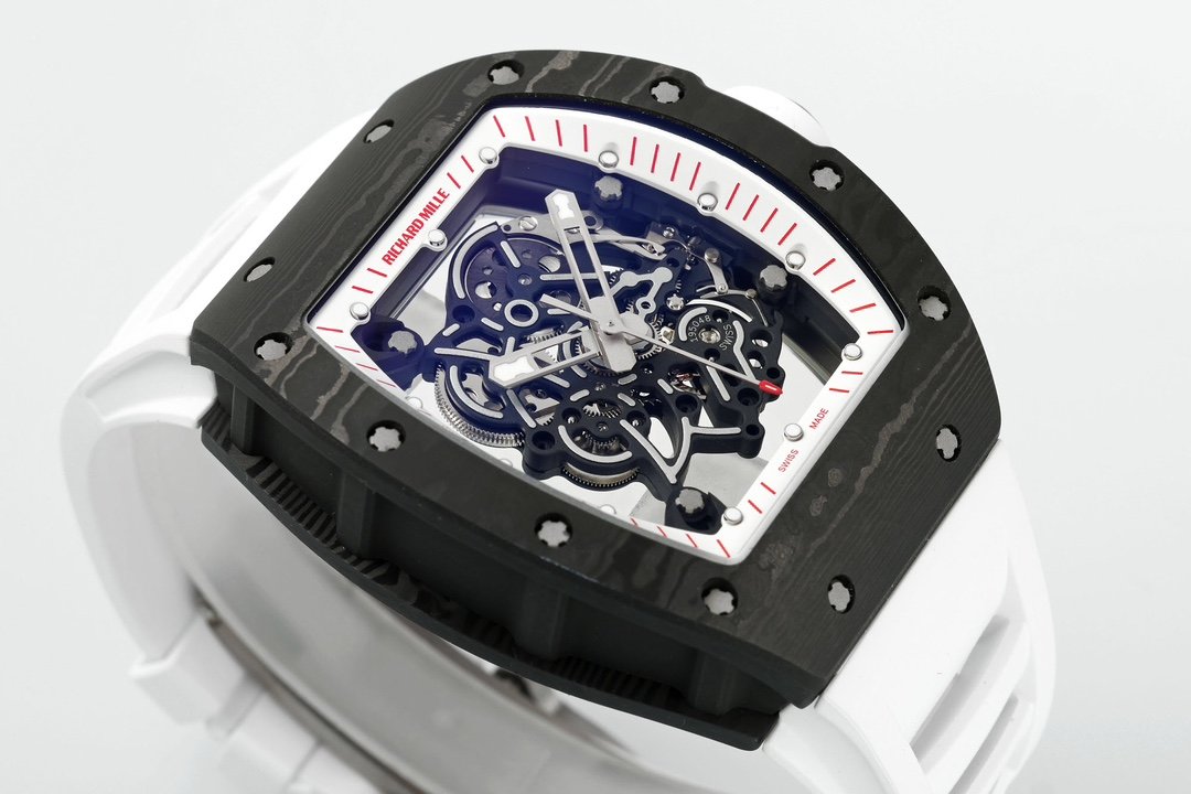 Richard Miller RM 055 RMUL2 NTPT Carbon Fiber White Rubber Strap