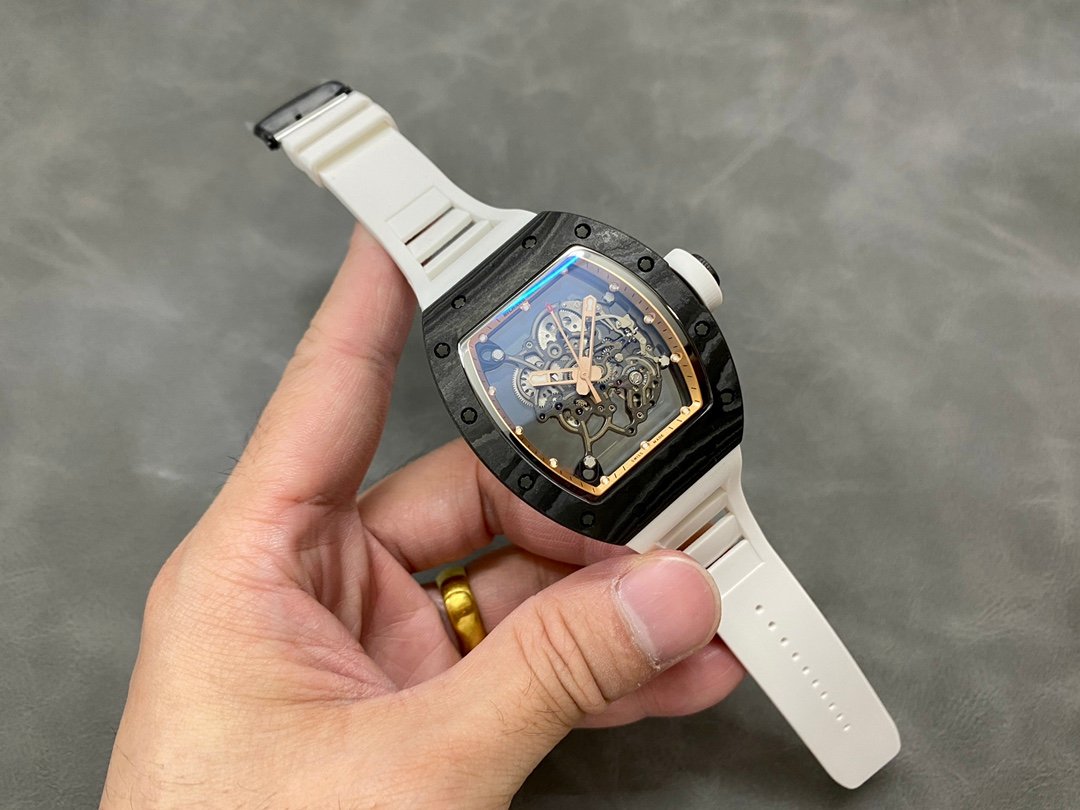 Richard Miller RM055 NTPT Carbon Fiber White Rubber Strap