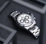 The chronograph function of the Daytona watch can be activated by pressing the button, and the button can be tightened like a winding crown when it is not needed to ensure that it is waterproof to a depth of 100 meters. The timepiece can be started, stopped or redesigned with a light press. The advanced technology makes the moment of pressing the button a crisp sound.