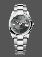 Rolex Datejust 126200 Stainless Steel Grey “Wimbledon” dial 36MM Unisex Replica Watch,Stainless steel case 36.0 mm in diameter,screw-down steel back, screw-down crown with twinlock double waterproofness system, Stainless steel smooth domed bezel. Scratch resistant sapphire crystal with cyclops magnifier. Grey dial with luminous hands and green roman numerals.instantaneous date at 3 o’clock with rapid setting, Stainless steel oyster bracelet with a fliplock clasp.