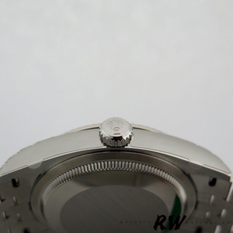 Rolex Datejust 126234 Fluted Bezel Pink Jubilee Diamond Dial 36MM Unisex Replica Watch features a 36mm stainless steel case, Polished solid white gold fluted fixed bezel ,Pink jubilee dial with diamond hour markers,scratch-resistant sapphire crystal ,Date window displayed under cyclops lens at 3 o’clock with instantaneous date setting. Jubilee bracelet with five-piece links, folding Oysterclasp buckle with Easylink comfort extension link.