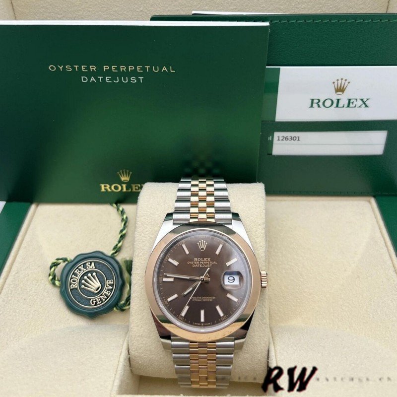 Rolex Datejust 126301 Rose Gold Chocolate Brown Index Dial 41MM Mens Replica Watch