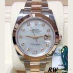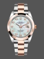 Rolex Datejust 126301 White MOP Diamond Dial Steel Rose Gold 41MM Mens Replica Watch,41MM Stainless steel and everose gold case in diameter.White mother of pearl diamond dot dial ,everose gold domed bezel, inner reflector ring engraved with serial number and scratch-resistant sapphire crystal, Mother Of Pearl diamond dial, luminous Chromalight hands and Index hour markers, Date window at 3 o’clock aperture,two-tone stainless steel and everose gold jubilee bracelet.