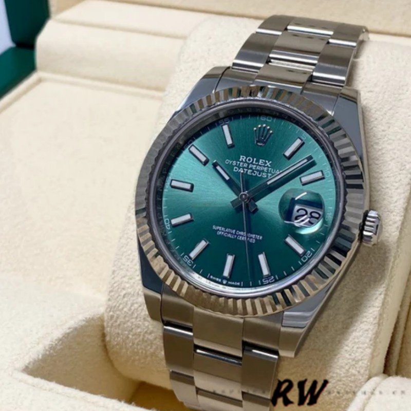 Rolex Datejust 41mm Fluted Bezel Green Dial m126334 0027 Mens Replica Watch