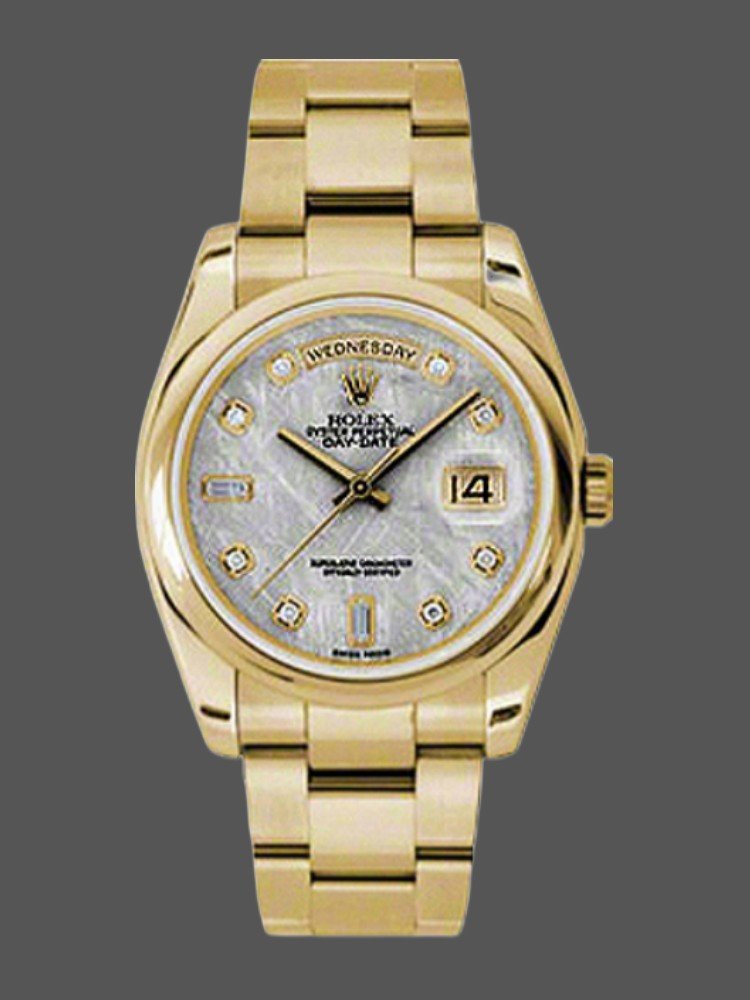Rolex Day-Date 118208 Meteorite Grey Diamond Dial 36mm Unisex Replica Watch