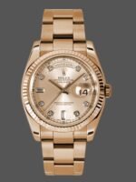 Rolex Day-Date 118235 Rose Gold Champagne Diamond Dial 36mm Unisex Replica Watch has a Rose Gold 36 mm Round Case with Screw Down Crown and a Rose Gold Fluted Bezel. Features a rose champagne diamond set dial with Manufacturer Serial Numbers. Scratch resistant sapphire crystal. Screw down crown. The reliable Rolex Rose Gold President Bracelet will look great on your wrist.