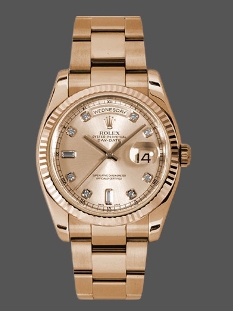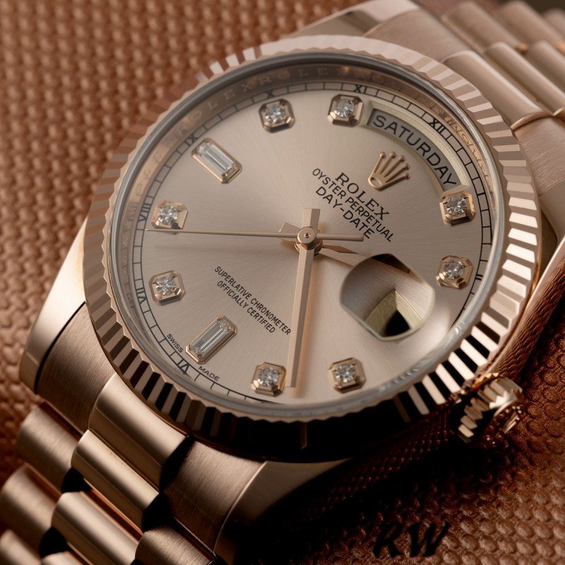 Rolex Day-Date 118235 Rose Gold Champagne Diamond Dial 36mm Unisex Replica Watch