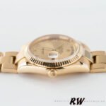 Rolex Day-Date 118238 Champagne Dial Yellow gold 36mm Unisex Replica Watch.36mm yellow gold case with a yellow gold rolex president bracelet. Fixed fluted yellow gold bezel. Champagne dial with yellow gold-tone hands and Roman numeral hour markers. Minute markers around the outer rim.Date display at 3 o’clock; day display at 12 o’clock.Scratch resistant sapphire crystal. Screw down crown. Solid case back.