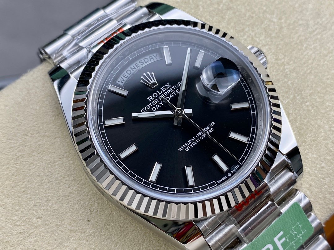 Rolex Day-Date 118239 Black Dial Fluted Bezel 36mm Unisex Replica Watch