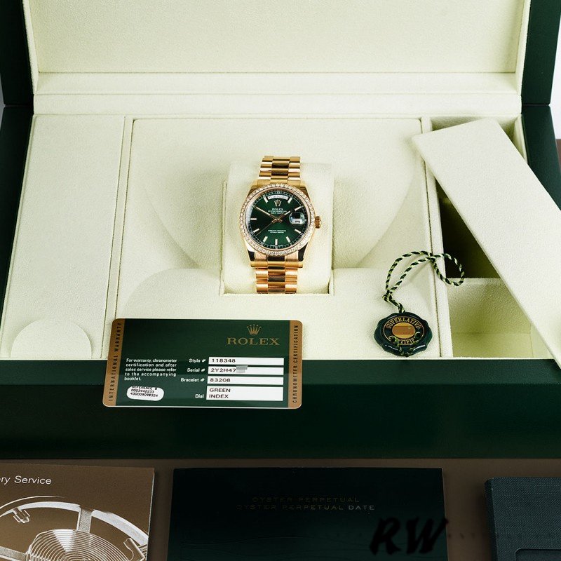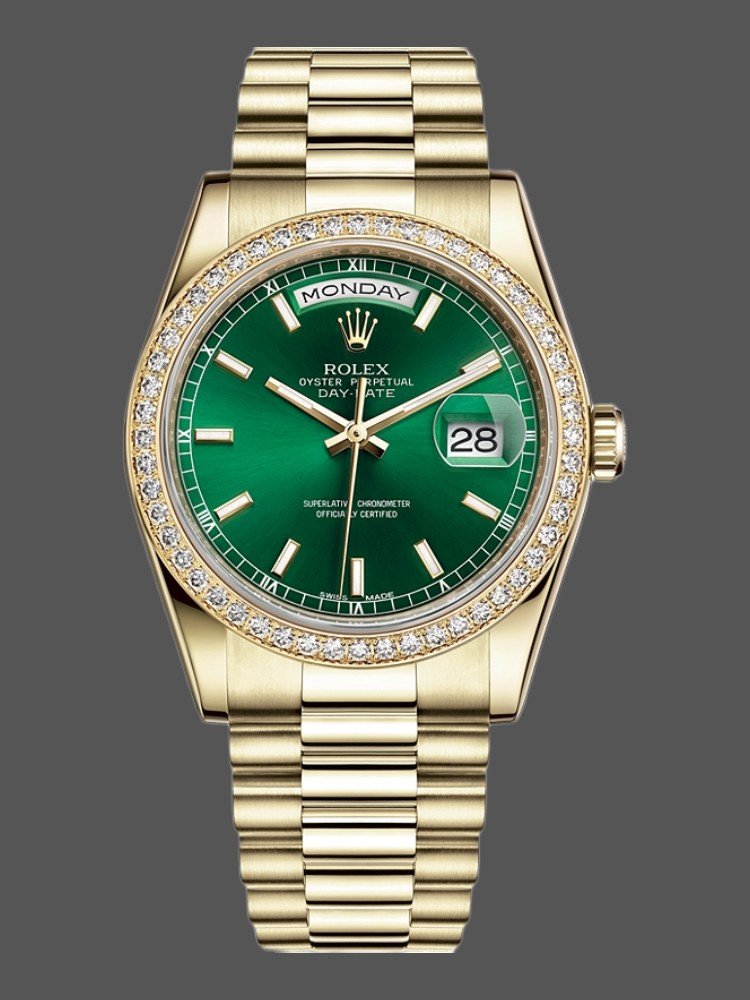 Rolex Day Date 118348 Green Index Dial Yellow Gold 36mm Unisex Replica Watch