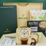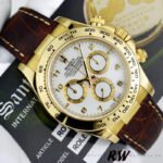 Rolex Daytona 116518 Yellow Gold White Dial 40mm Mens Replica Watch.40.0 mm yellow gold case in diameter.yellow gold tachymeter engraved bezel. Scratch resistant sapphire crystal. White dial with arabic numerals. Small seconds hand at 6 o’clock. Centre chronograph hand, 30-minute counter at 3 o’clock and 12-hour counter at 9 o’clock. Brown leather strap with yellow gold deployent buckle.