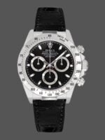 Rolex Daytona 116519 White Gold Black Dial 40mm Mens Replica Watch.40mm Stainless Steel case and bezel.Minute markers around the outer rim. Black dial. Black Leather Strap with deployant clasp. Luminous Index.The bright luminous sticks marked on the dial will light up when you leave the light.The hands of the replica watch is silver-tone which is pretty cool and fashionable.