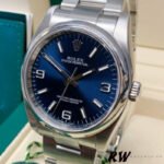 Rolex Oyster Perpetual 116000 Blue Dial 36mm Automatic Unisex Replica Watch.Stainless steel case 36.0 mm in diameter.Stainless steel smooth domed bezel.Blue with luminescent markers index markings,Scratch resistant sapphire crystal,transparent case back. Blue dial surrounded by a polished finish stainless steel domed bezel on a full retail length stainless steel Rolex Oyster bracelet. Blue Dial with luminous hour markers and arabic numerals at 3,6 and 9. Luminous baton hands. Stainless steel oyster bracelet with flip lock clasp.Fits 7 3/4