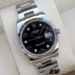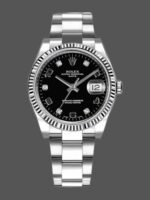 Rolex Oyster Perpetual Date 115234 Black Diamond Dial 34mm Unisex Replica Watch.Stainless steel case 34 mm in diameter. High polished lugs.Polished stainless steel “Twinlock” crown, featuring two sealed zones when the crown is screwed down: the first inside the tube of the crown, the second inside the winding crown itself.Fine printed minute track on the black dial perimeter.Date window at 3 o’clock aperture.Stainless steel oyster bracelet with a oysterlock clasp. Fits 7″ wrist.
